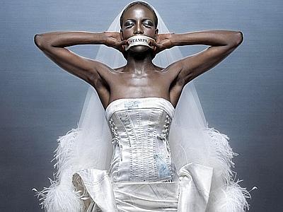 Sempre nel corso della kermesse Altaroma, ha fatto tanto parlare di sè la singolare sfilata della maison Gattinoni nella splendida cornice del Casino dell’Aurora di Palazzo Pallavicini, in pieno centro cittadino. Tra i capi della collezione per il prossimo autunno/inverno la maison d’alta moda capitolina ha presentato l’originale “abito-stampa”, che ha chiuso la sfilata. Un abito da sposa con impresse scritte da quotidiano e bavaglio sulla bocca, disegnato dallo stilista Guillermo Mariotto per protestare contro le limitazioni della libertà di stampa previste dalla “legge bavaglio”.