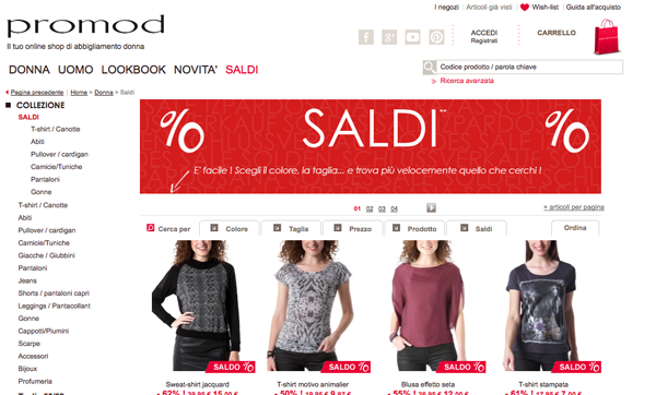 Fatelo, perché Promod ha allungato il periodo di saldi e se siete bravi a districarvi tra i vari reparti, troverete sicuramente delle interessanti occasioni per abiti carini e a basso prezzo. Gli sconti arrivano fino al 70% e dunque l’occasione per risparmiare sui vestiti c’è eccome. Si possono dunque acquistare t shirt a partire da 7 euro (58% di sconto sul prezzo base) ma non solo, perché rovistando tra il reparto saldi Promod si possono trovare anche tanti altri spunti interessanti. Pullover, minigonne, leggins e tutto quello che vi occorre per essere sempre alla moda con un occhio però al risparmio (che in tempi di crisi come questo, non fa mai male).