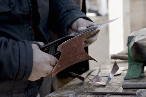Grate, argentatura, finsissi, oppure cancelli, ottone e ferro sono il suo pane quotidiano. Il design, qui, è dunque l’incipit per concepire l’opera che sarà. Le stesse varie operazioni che danno luogo al pezzo finale sono descritte minuziosamente nelle sue brochures e coinvolgono il cliente. Il quale, quando arriva qui ha un’idea o comunque una intenzione e poi, alla fine, esce con la creazione vera e propria in suo possesso. Forgiatura, piegatura, vernicatura e tamponatura: fasi delicate nonostante si tratti di materiali che vanno resi malleabili attraverso precisi procedimenti da osservare. La prima fase vede il ferro arroventato nella fucina e forgiato in maniera da assumere una forma grezza e basilare. Con la seconda, la piegatura, i pezzi vengono piegati quel tanto che basta per essere plasmati ed assecondare, così, quanto viene richiesto nel progetto iniziale. La fase finale, poi, quella verniciatura e della tamponatura, registra i vari steps di colorazione.