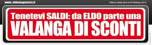 Il volantino Eldo Roma (consultabile alla fine del post) propone tante offerte fino al 29 febbraio. Con la promozione “Tenetevi Saldi: da Eldo parte una valanga di sconti”, il megastore vi dà la possibilità di acquistare prodotti a prezzi davvero irrisori. Sconti che possono arrivare fino al 30%.